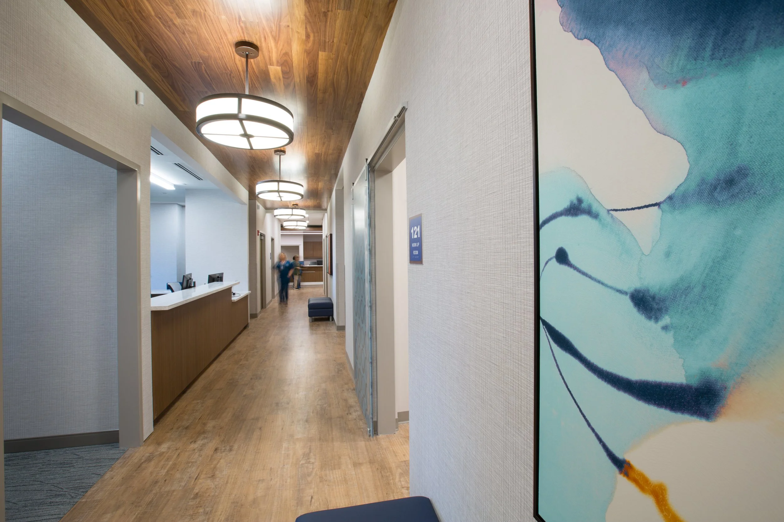 In the end, this new construction not only met Aylo Health's need for a hospitality-inspired healthcare space but exceeded expectations. The Corporate Environments team demonstrated that with creativity, collaboration, and a willingness to push boundaries, healthcare environments can be reimagined to provide a unique and positive experience for both staff and patients. The project stands as a testament of innovative design in rethinking traditional spaces.