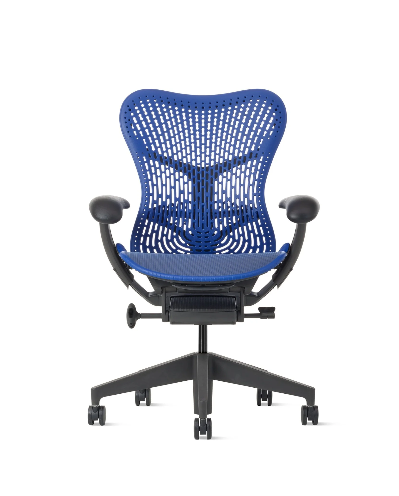 Named for the way it mirrors the body’s movements, Mirra 2 balances immediate comfort and personalized ergonomics in one sophisticated design that can have a professional or playful aesthetic, depending on the color palette. Designed with an “earth first” philosophy, it’s an agile, high-performance chair for people who toggle between individual activities and collaborative work.