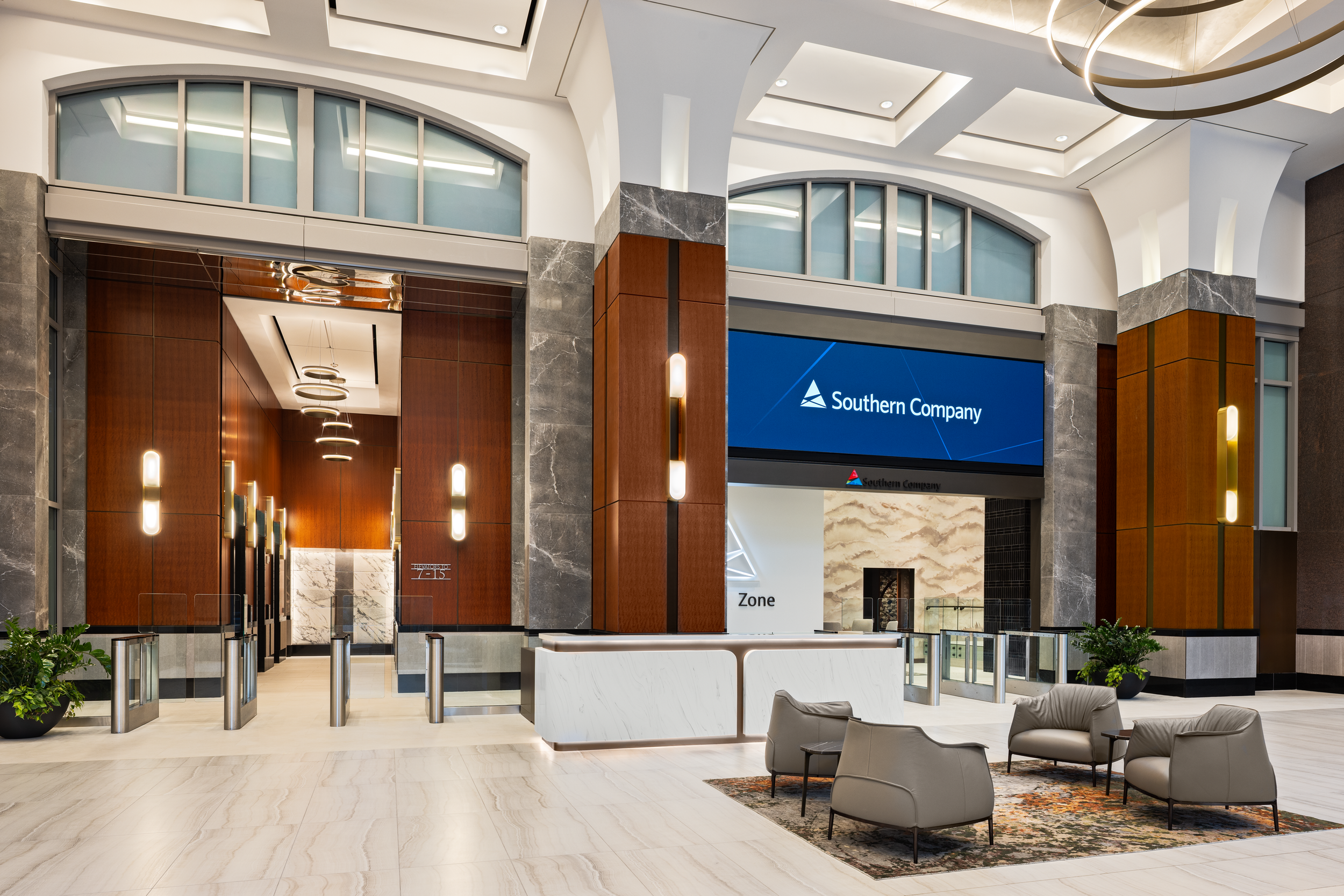 Over the past year and a half, Southern Company has been on a mission to elevate the appearance of their spaces while making them more comfortable, inviting, and engaging. As part of this vision, they sought to transform key areas, most notably the Conference Center, Lobby, and Café, into environments that reflect their brand, enhance employee and guest experiences, and offer unique moments of connection.