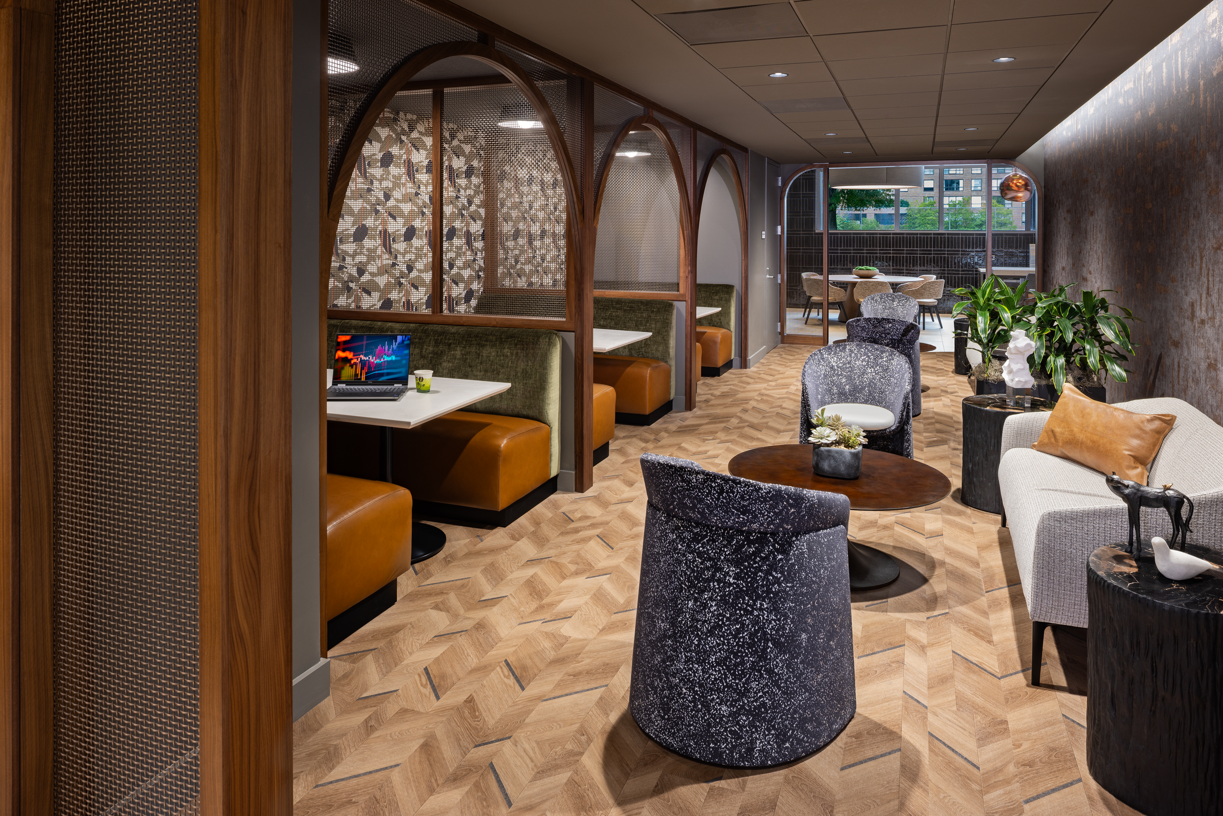 Corporate Environments teamed up with A+D firm Hendrick to bring this transformation to life, providing curated, design driven solutions implemented over multiple phases. The refreshed Conference Center now enhances and elevates every event it hosts, while the reimagined Café features a unique speakeasy inspired ambiance, created to be not just a place to visit but a space to truly experience.